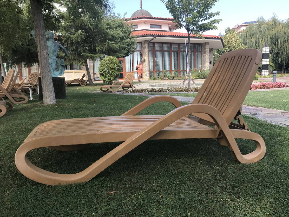 Оригинальный шезлонг в своём внешнем виде и удобствами. Они предназначены для круглосуточной эксплуатации на открытом воздухе. Каркас шезлонга изготовлен из высококачественного полипропилена. Шезлонги не боятся сильных ударов и нагрузки (до 120кг) и не деформируются в неблагоприятных условиях. Готовы прослужить вам долгую и надежную службу.